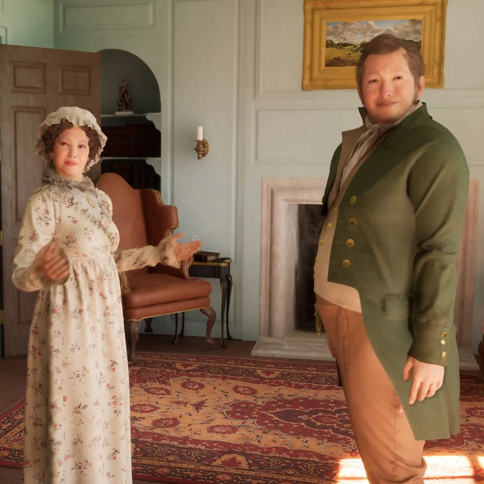In Whenere, we have trained AI NPCs on period-appropriate knowledge, manners and speech patterns to create individuals that truly feel like the characters in the book. They act out the story by conversing with one another, by following a word-for-word script, or leaning on their AI-ness and following a script based on prompts.